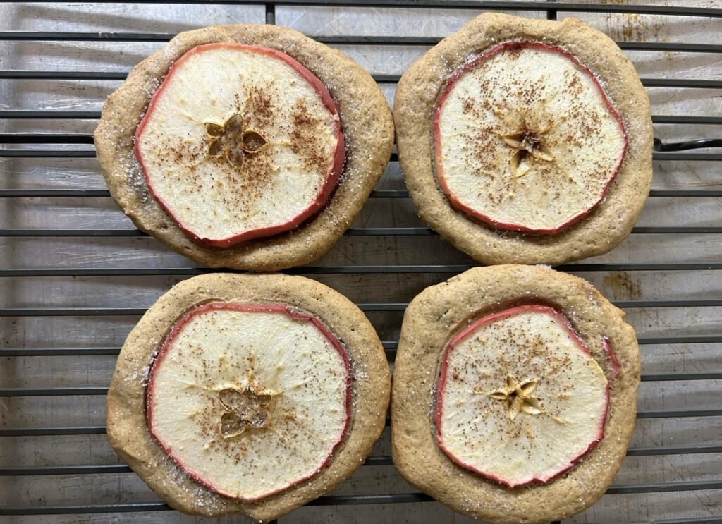 - Las galletas deben verse doradas por los bordes, con la manzana ligeramente translúcida.