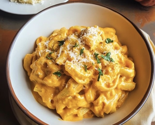 Una receta cremosa y reconfortante, perfecta para aprovechar la calabaza de temporada. La salsa suave combinada con el toque salado del parmesano convierte un plato sencillo de pasta en una comida deliciosa, fácil de preparar y llena de sabor otoñal.